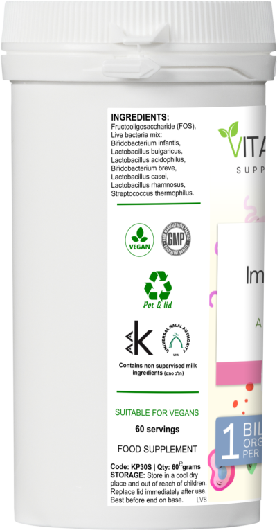 From birth onwards, this vegan product can be given as a supplement. It is free from sugars, artificial flavours and colourings, which can be found in other children’s supplements and foods containing live cultures.