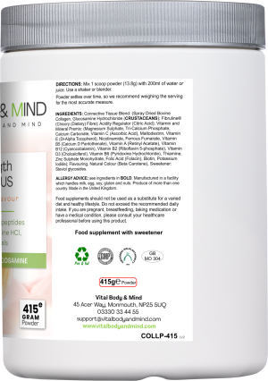 Glucosamine is an amino sugar that is produced naturally in the body. Glucosamine hydrochloride is one of several forms of glucosamine and the glucosamine HCl contained in this food supplement is derived from vegan sources.